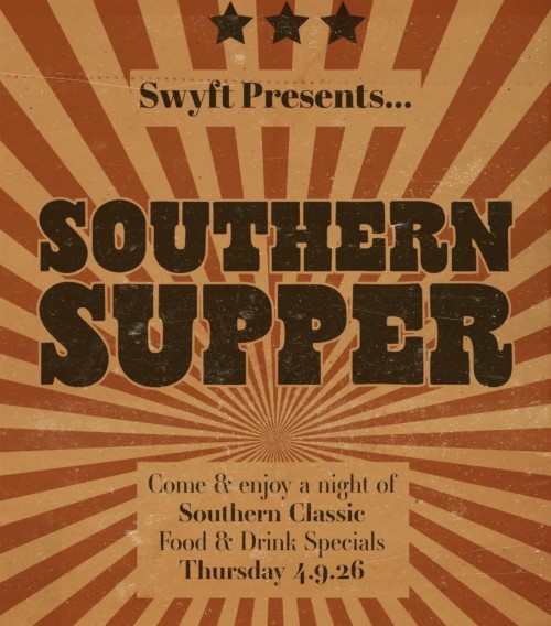 Dinner and drink specials inspired by the deep south (in addition to our regular dinner menu). 5 pm-9 pm